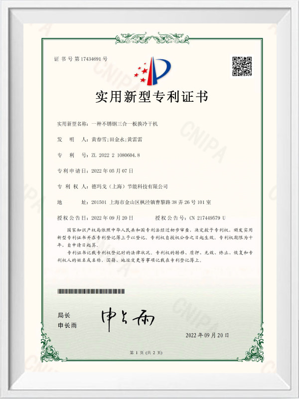 Kombinovaný certifikát patentového modelu sušičky bez tepelných sušičiek