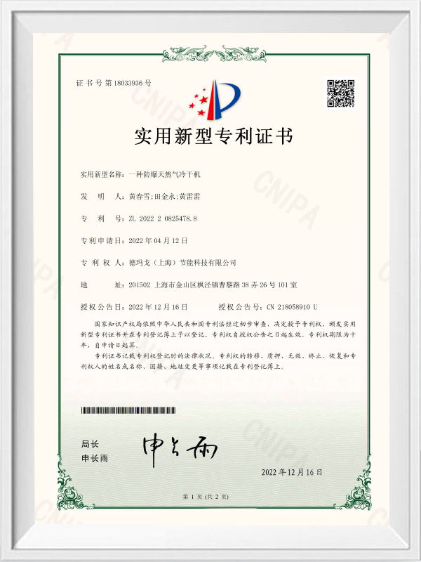 Výbuch odolný voči zemnému plynustu na studenú sušičku a úžitkovú certifikát