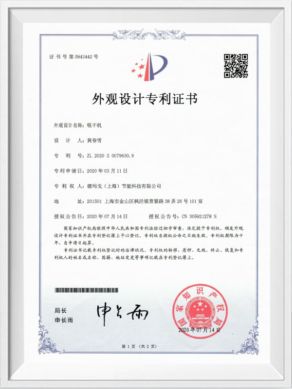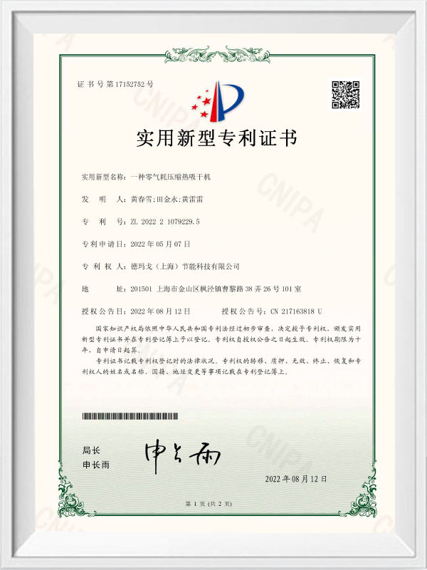 Nulová spotreba vzduchu Blast Absorbovanie sušiča - modelu úžitkového modelu patentového certifikátu