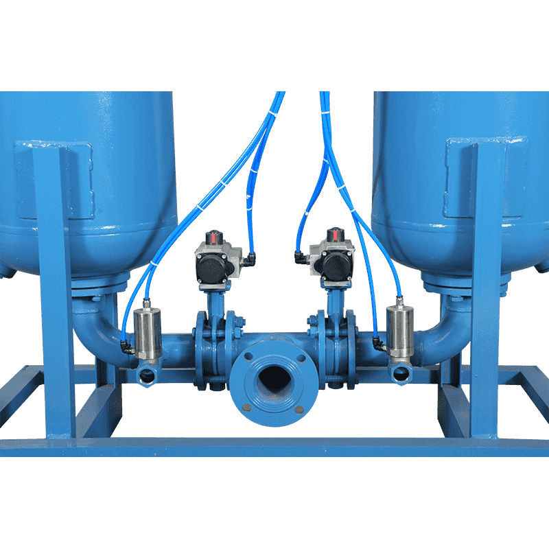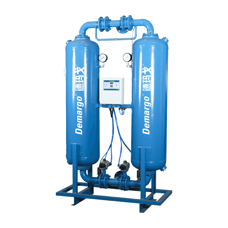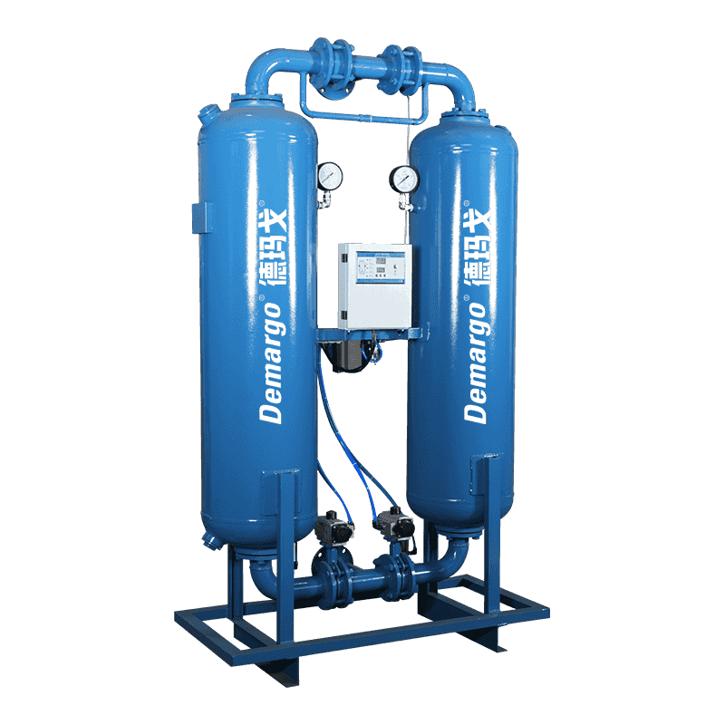 Regeneratívna adsorpčná sušička bez teplu používa na dosiahnutie účinku sušenia „adsorpcia tlakového výkyvu“. Pretože schopnosť vzduchu držať vodnú paru je nepriamo úmerná tlaku, časť vzduchu po sušení (nazývaného regeneračný plyn) sa dekomprimuje a rozširuje sa na atmosférický tlak. Vďaka tejto zmene tlaku je rozšírená sušička vzduchu a potom sa nechá pretekať cez vrstvu vysychania, ktorá nie je spojená s prúdom vzduchu (t. J. Sušia veža, ktorá absorbovala dostatok vodnej pary). Plyn suchej regenerácie absorbuje vlhkosť v vysušení a vytiahne ju zo sušičky, aby sa dosiahol účel odvlhčenia.