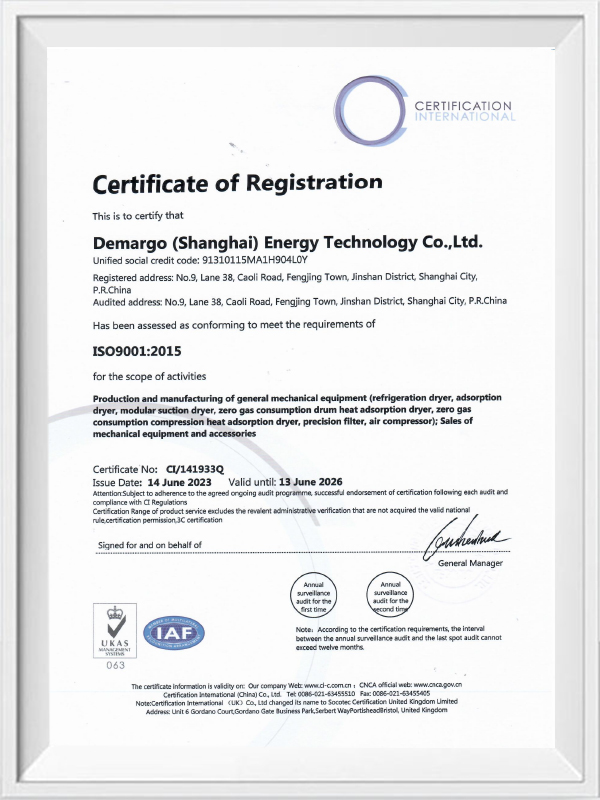 Spoločnosť DeMargo (Shanghai) Energy Saving Technology Co., Ltd. sa spolieha na svoje výhody v oblasti špičkových technológií, presných konštrukčných a výrobných procesov, uplatňovania vysokovýkonných tesniacich materiálov, inovácií patentovanej technológie tesnenia, prísneho systému kontroly kvality a profesionálnych predpredajov medzi predpredajmi, ktoré majú predpredaj, a po spelách, ktoré majú moduly, ktoré majú experiálne predpredaj, alebo sucho Predchádzanie úniku komprimovaného vzduchu a poskytovaní používateľom efektívne a spoľahlivé roztoky sušenia vzduchu.